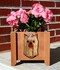 Materials: Pine sides and legs with perforated PVC plastic bottom. Finished with an outdoor stain/sealer. Weather resistant. Single hand-painted 2-dimensional breed head included. Holds up to 4 heads. Suitable for indoor or outdoor display. Overall dimensions: 9-1/8" x 9-1/8" x 8". Inside dimensions: 6-3/4" square. Flower not included.