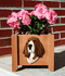 Materials: Pine sides and legs with perforated PVC plastic bottom. Finished with an outdoor stain/sealer. Weather resistant. Single hand-painted 2-dimensional breed head included. Holds up to 4 heads. Suitable for indoor or outdoor display. Overall dimensions: 9-1/8" x 9-1/8" x 8". Inside dimensions: 6-3/4" square. Flower not included.