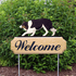 FREE SHIPPING! More Beautiful in person! These are made to order, so please allow 10 business days for delivery. Holiday Season please allow approximately 14 days for delivery, so Please order early! Resin dog reproduction mounted on a solid oak sign. Dog measures 11 1/2" in length. Sign measures 4 1/2" x 15". Two aluminum rods measures 1/4" x 16" each in length. Hand painted. Made in USA.