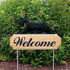 FREE SHIPPING! More Beautiful in person! These are made to order, so please allow 10 business days for delivery. Holiday Season please allow approximately 14 days for delivery, so Please order early! Resin dog reproduction mounted on a solid oak sign. Dog measures 11 1/2" in length. Sign measures 4 1/2" x 15". Two aluminum rods measures 1/4" x 16" each in length. Hand painted. Made in USA.