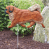Two-dimensional resin dog breed mounted on an aluminum rod. For display in garden, flower bed or any area of landscaping. Dog measures approx. 11 1/2" in length. Stake is 1/4" x 16". Hand painted. Made in USA.
